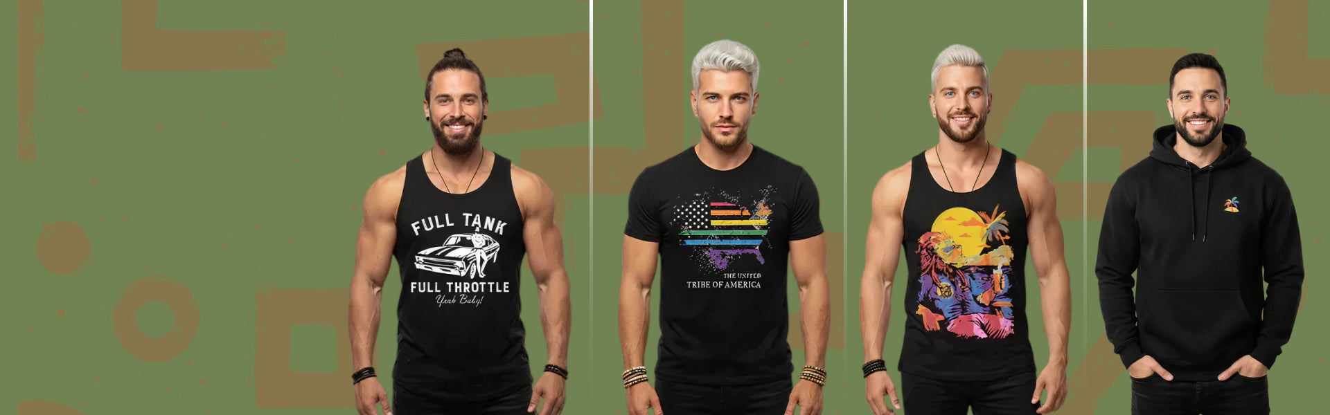 We offer inclusive sizing for every body. All T-shirts, tank tops, muscle tanks, and hoodies are available from S–3XL (and up to 5XL on select items). Check the detailed size chart on each product page to find your perfect fit.